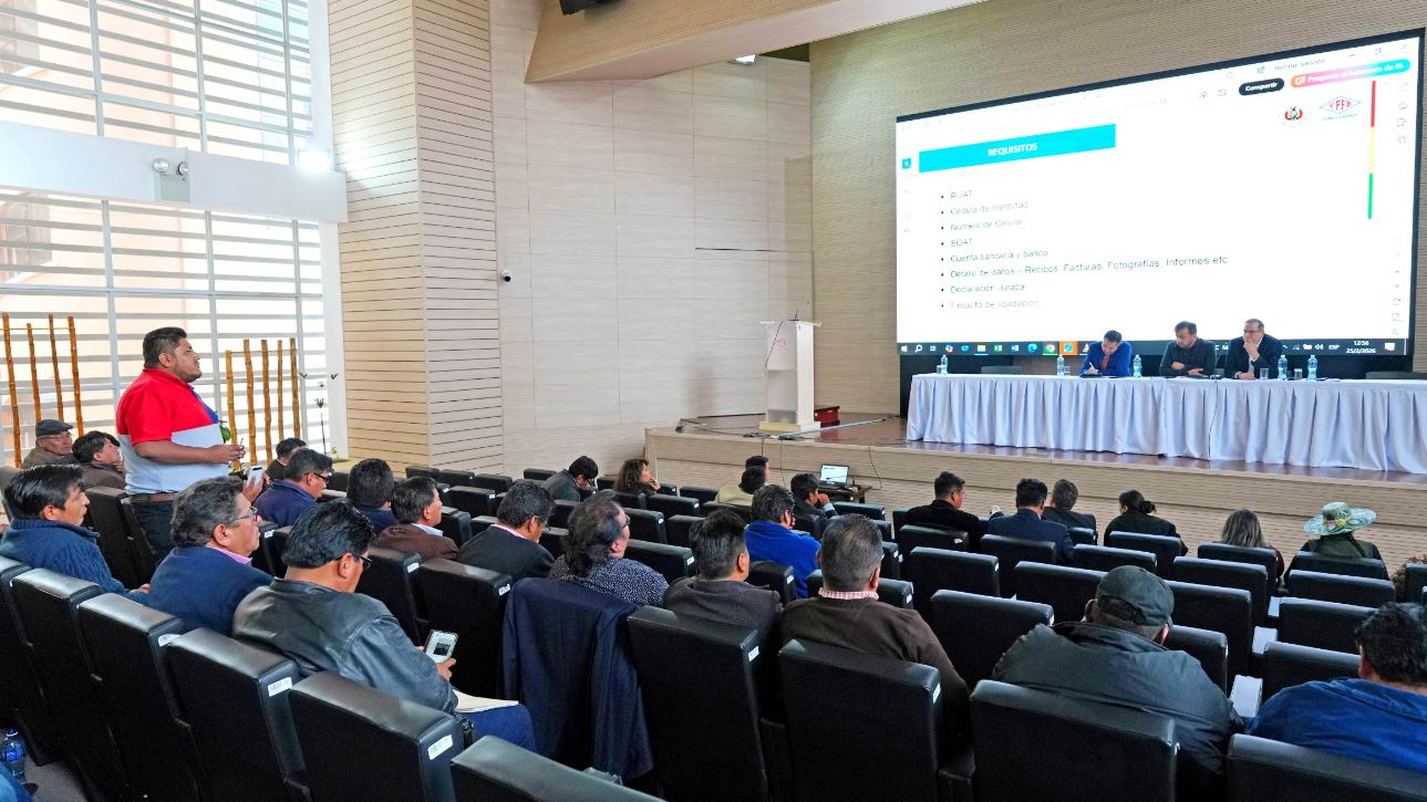 El RUAT, la cédula de identidad, número de celular, SOAT, cuenta bancaria y banco, detalle de daños (recibos, facturas, fotografías, informes etc.), declaración jurada y el finiquito de liquidación, son requisitos para acceder a la compensación mencionada.